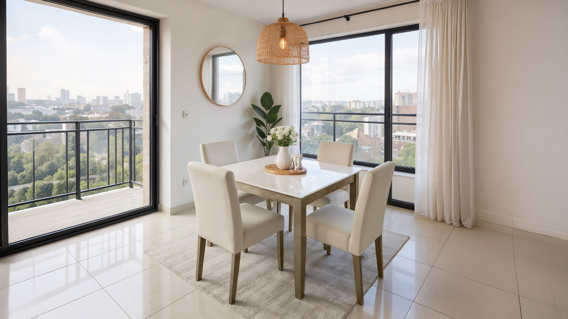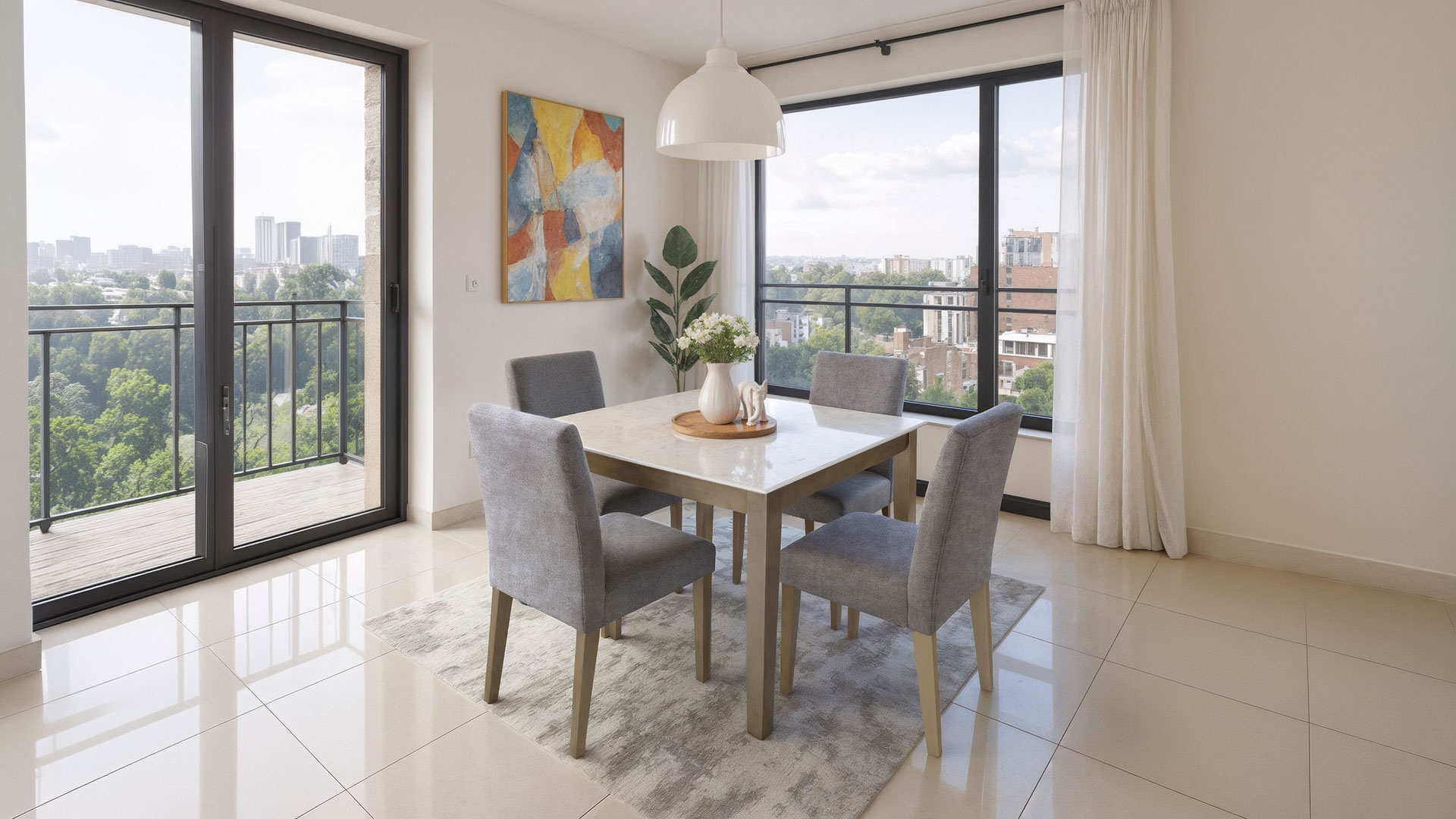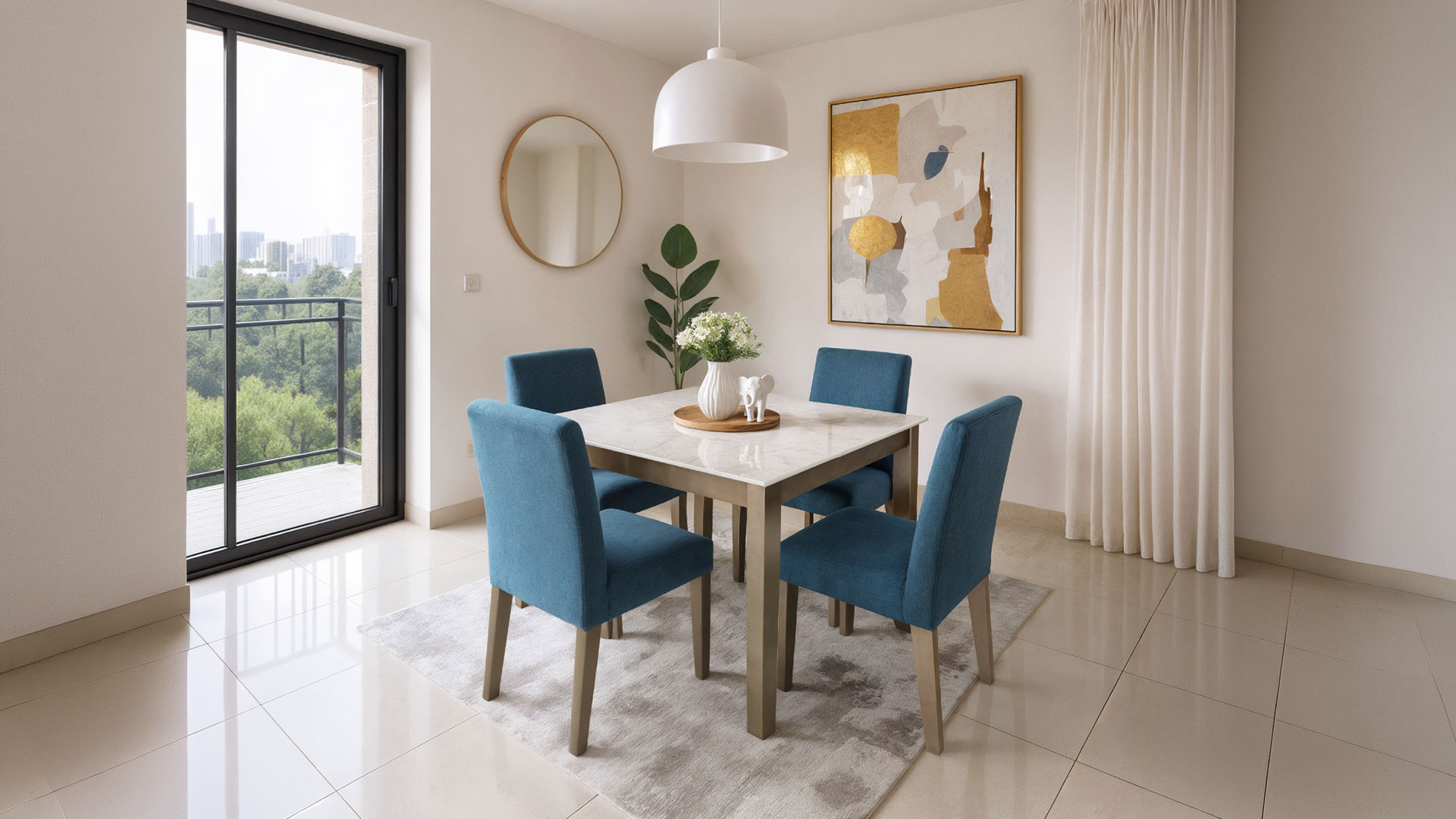 Comedor Onix Champaña X4, Plantilla de Madera, Tapizado en Tela o Cuerina